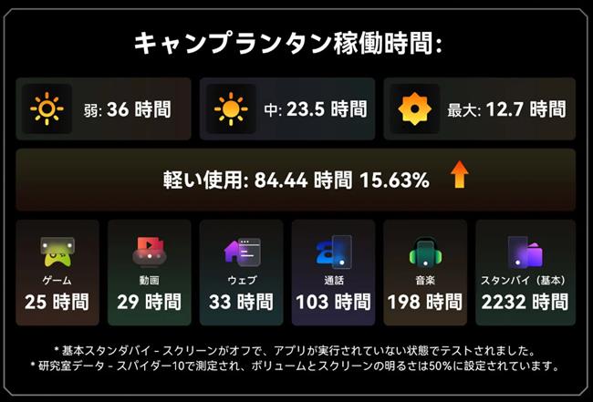 1回の充電で29時間の動画視聴、22時間のゲームプレイを可能としています。また5分の充電で丸1日の使用が可能としています。