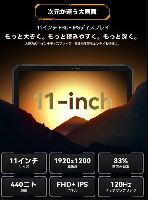 ディスプレイは 11インチの1920×1200、リフレッシュレートは最大60HzのIPS液晶を採用しています。