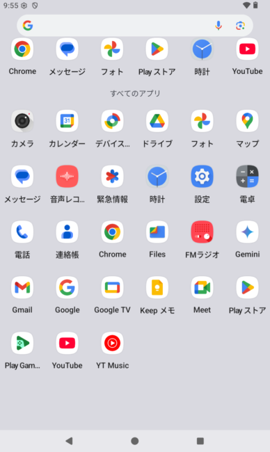 バンドルアプリは、Google系の基本アプリとのみ。消せないメーカーのアプリは入っていないので余計な負担がありません。