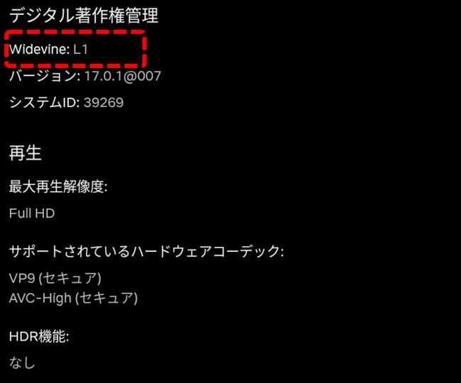 この端末は、WidevineがL1のセキュリティレベルに対応しています。