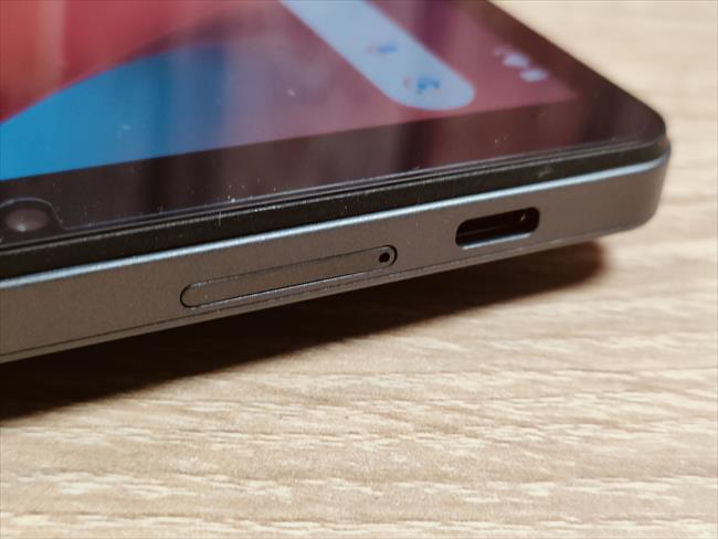 端末上面はSIMカードスロットとUSB-Cポートが配置されています。