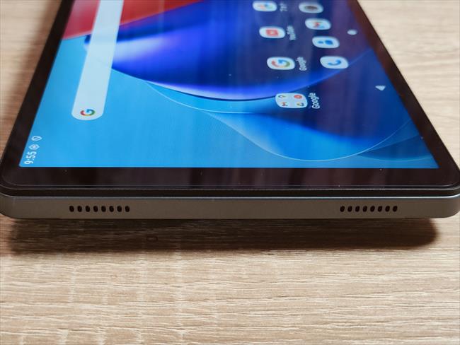 スピーカーはデュアルステレオスピーカーを搭載しています。縦持ち時の下側左右に2方つ配置されているので、横向きに持つと右か左側の片方から聴こえて来てしまいます。