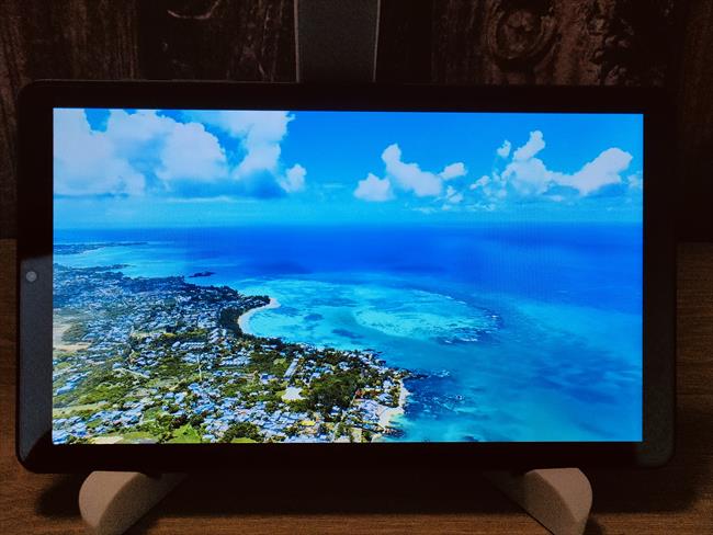サイズは125.6 x 212.94 x 8.4 mmIPS液晶ですが発色も綺麗で、視野角度は浅い角度からでも見えます。メディア端末としては十分に合格点だと思います