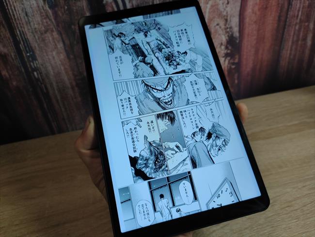 コンパクトサイズなので、マンガリーダーとしてはピッタリです。8.7インチなので、漫画は見開き状態で読むには少し厳しいサイズです。