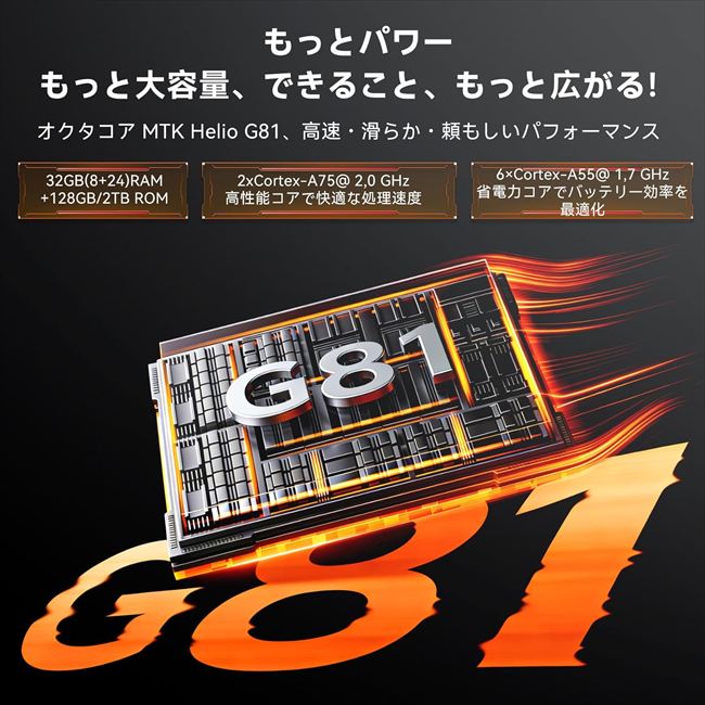 | SoC | MediaTek Helio G81 (8コア / 最大2.0GHz) |