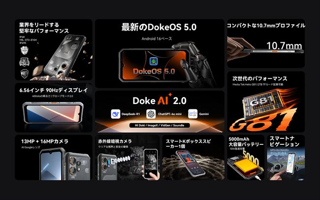 | 防水・防塵・耐衝撃 | IP68/IP69K防水防塵 MIL-STD-810H軍用規格 |