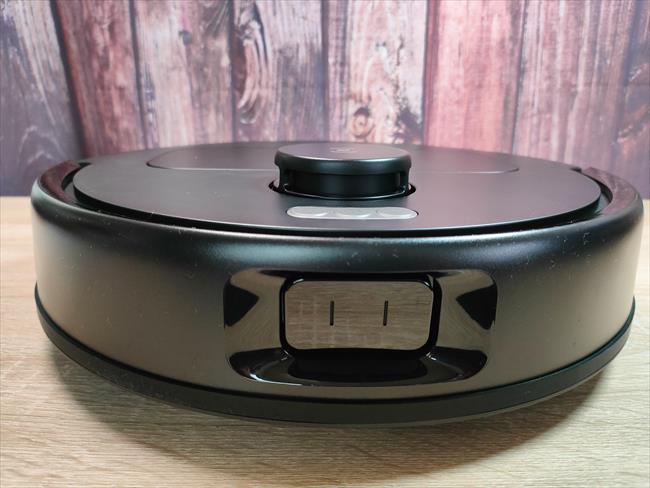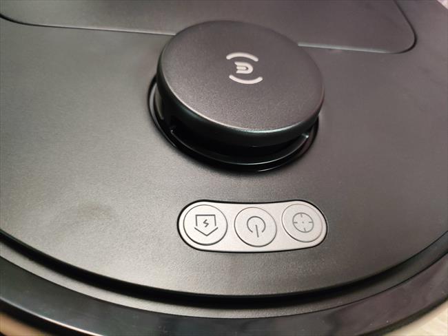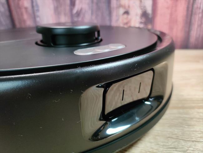 本体の電源とホームボタンなどは本体上部に配置されています。オートオフに対応しているので、大本の電源は普段はオフにしません。メンテナンスやダストボックスの掃除の時に使います。
