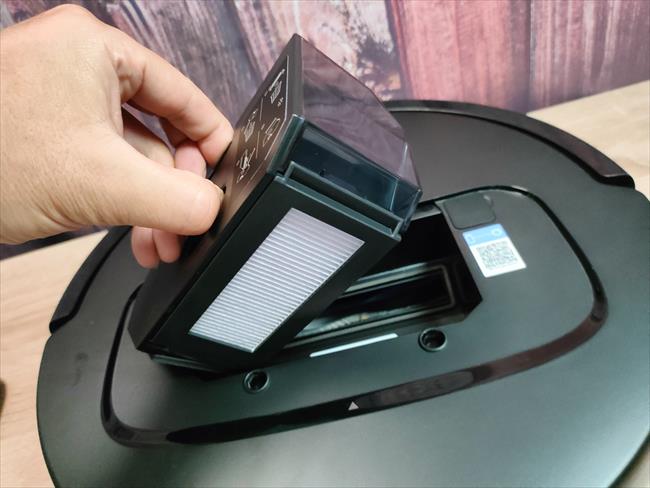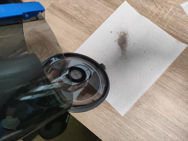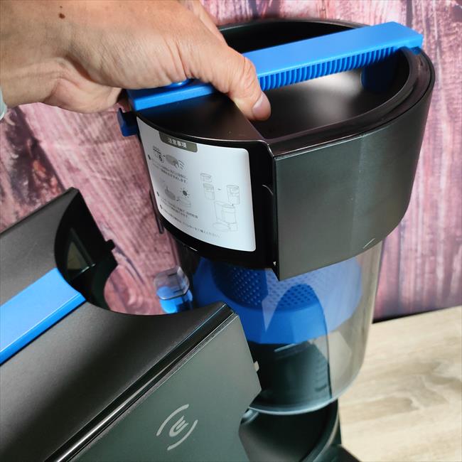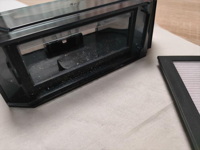 収集ステーションに戻り、ゴミを収集した後、掃除機本体のダストボックスを開いて見ました。