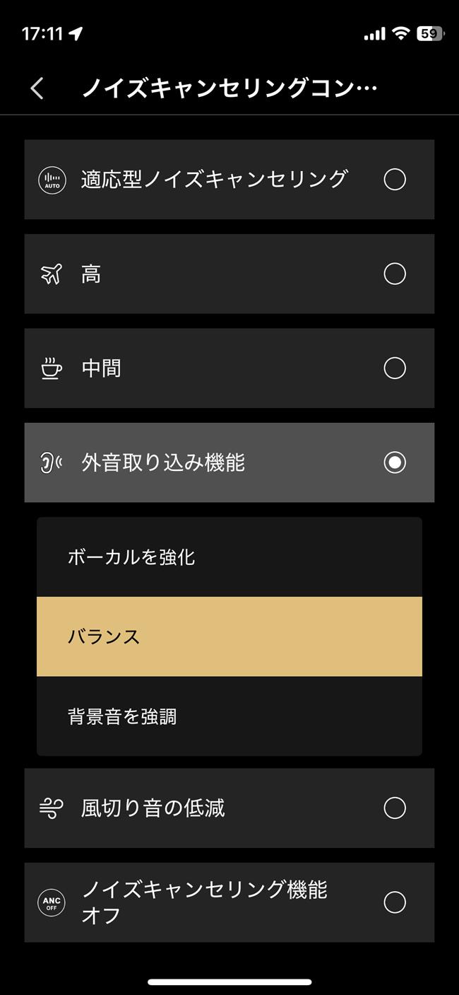 インナーイヤーイヤホンは、構造的にノイズキャンセリング機能は苦手です。