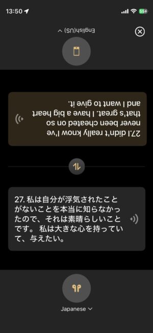 対話モードと翻訳モードがあり、対面モードは向かい合わせに画面が見えるようになっています。