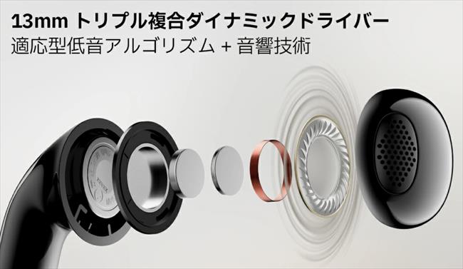 音の出力に関しては13mm複合ダイナミックドライバー。