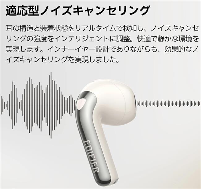 適応型ノイズキャンセリング機能が搭載されており、周囲の状況を検知して自然にノイズを除去します。
