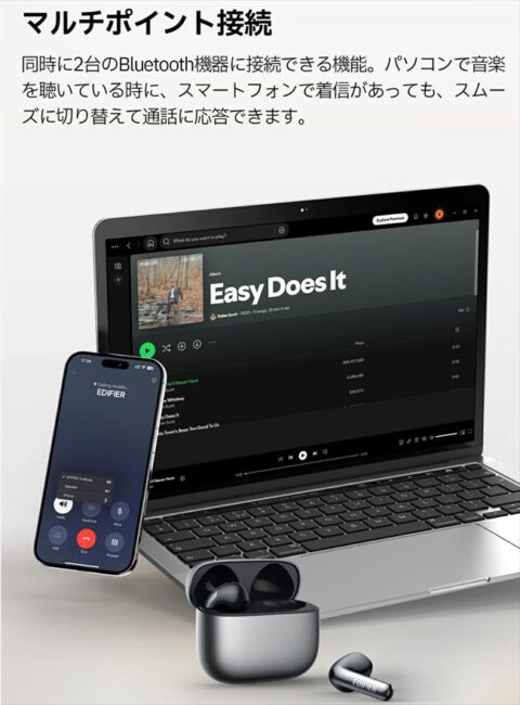 マルチポイント接続とは、2台の機器と同時接続し、それぞれで通話も音楽も受信できる機能。今モデルから対応しました。