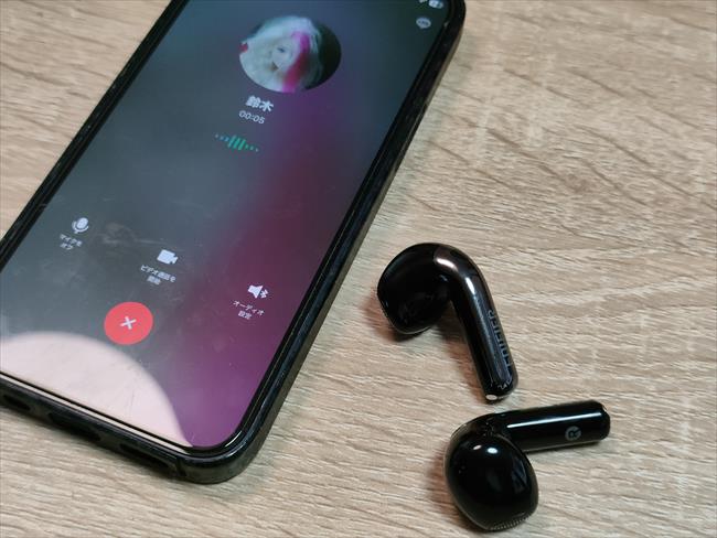通話に関しては、AI搭載のスマートノイズキャンセリング技術と片側2つのマイクロフォンを使用しており、周囲のノイズをキャンセルしたクリアな通話が可能としています。通話に使ってみましたが、通話品質はスマートホンでの直接会話に近い感覚で通話ができました。