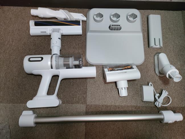 カーペットや車内清掃では最大出力で使ってみましたが、足元の小石までしっかり吸い上げてくれました。シートにこびりついた犬の毛は、ミニモーターブラシで綺麗になりました。軽くて使いやすいヘッドが多数用意されているので、車内清掃に便利だと感じました。
