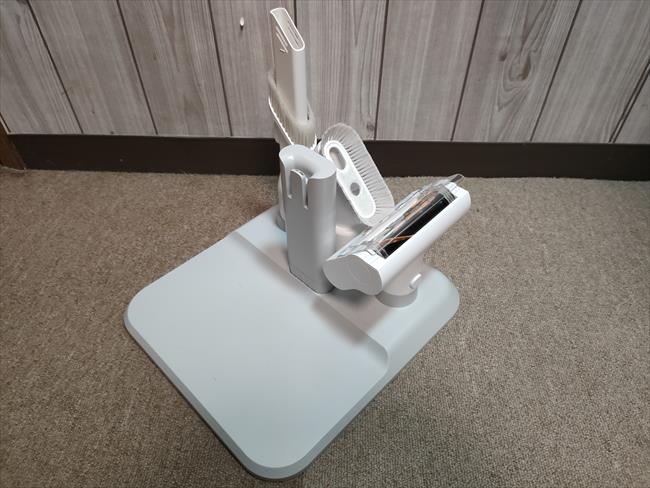 掃除機は自立しません付属のスタンドは、床置きタイプ。壁を傷つける事なく設置できるのがいいですね▼
