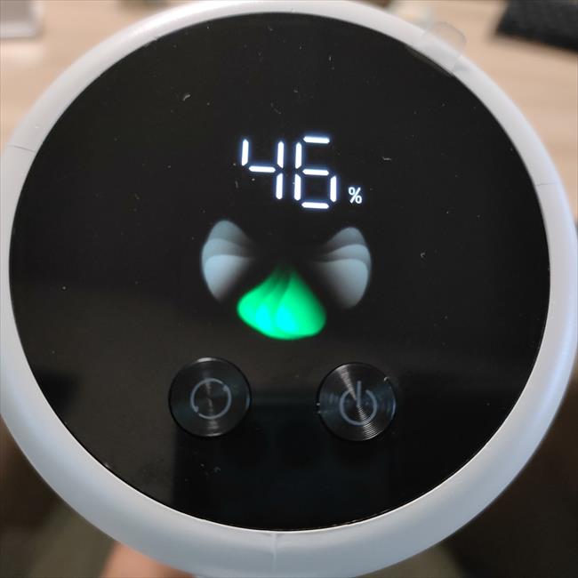 スイッチのオンオフは手元のボタン部分で行います。液晶部分にはバッテリー残量と吸引モードが表示されます▼