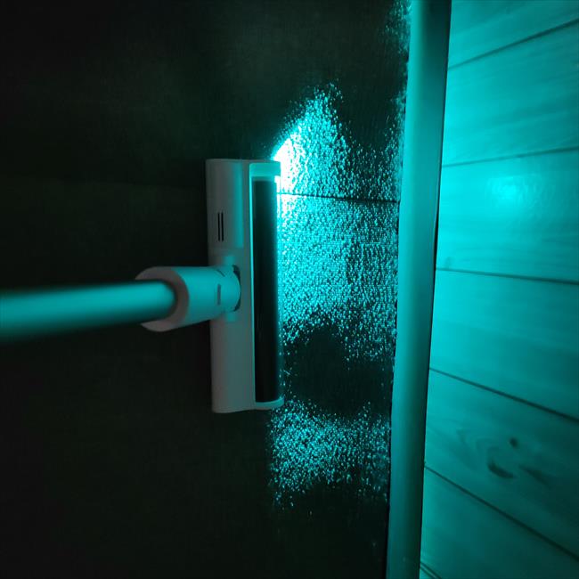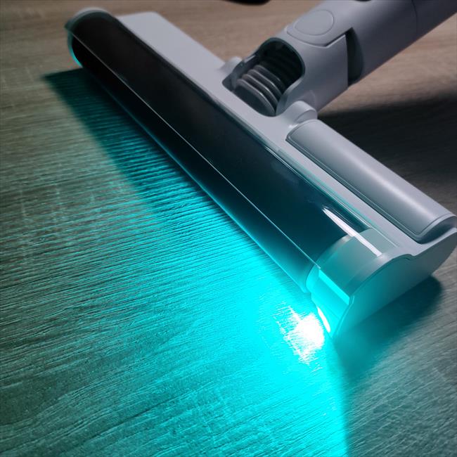 ヘッドは140°の広域を照らすLEDライトがついており、暗い隙間でも掃除状況を明るく照らします▼