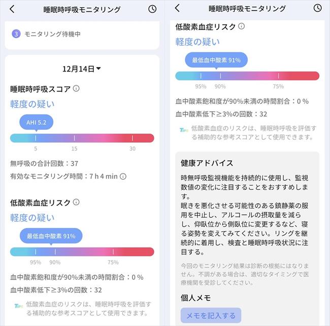 私は、睡眠時に無呼吸状態になる事があるので、この機能は嬉しいです。