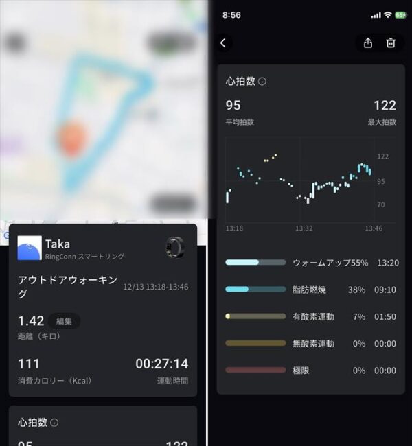 スマートフォンと一緒に持ちだせばRingConnアプリでスマートフォンのGPSと合わせて経路を含めた記録は行えます。