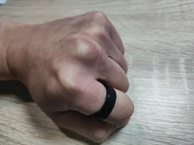 以前、他のスマートリングを使った際、少し余裕があるサイズを選びました。手の内側に配置するセンサーが回ってしまい、正しくログが取れていない事がありましたので、今回は抜けなくなるのが怖いくらいピッタリのサイズを選びました。