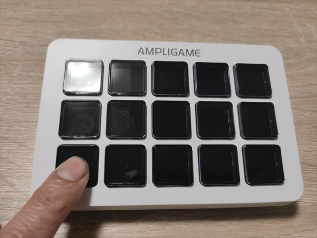 デバイスは横5 x 縦3の15個のボタンが配置されています。手元にあるのはホワイトですが、ブラックも用意されています▼