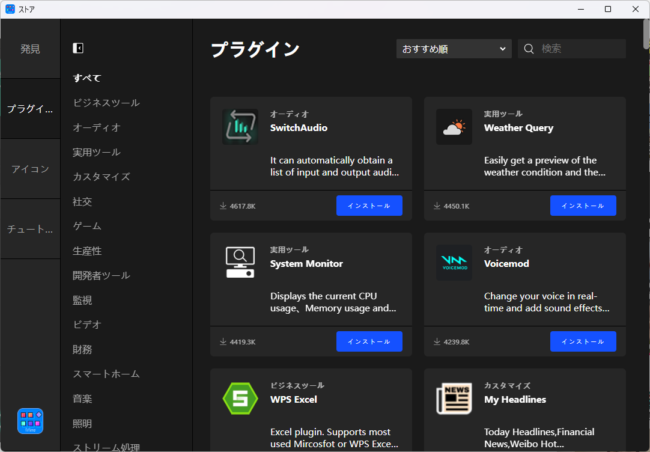 右上のアイコンをタップすると、様々なプラグインが利用可能です。ゲームやアプリ専用のプラグインからキーに何かを表示するプラグインまで、多数のプラグインが用意されています▼