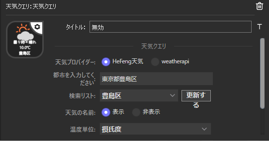 表示系のプラグイン「天気クエリ」は地域を設定すると、天気と気温がキーに表示されるようになります▼