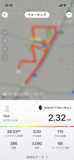 犬の散歩の時にウォーキングモードで歩いてみました▼