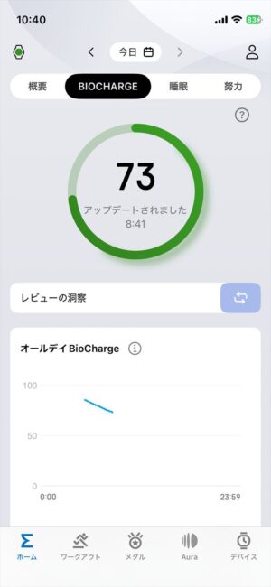 毎朝、レディネススコアで確認していますが、数値をみると前日の疲れが取れている時ほど高いスコアになっています。