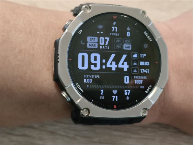 実際に使ってみると、通常の使い方で一日で約7%~9%程度の消費でした。一日一回1時間のウォーキングと常時点灯をオフ、就寝時にも装着続けての計測結果です。