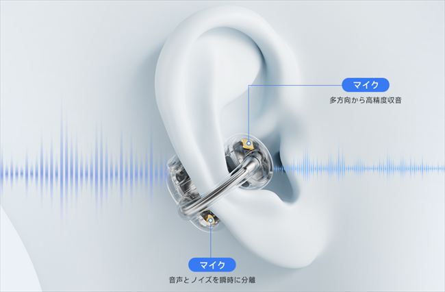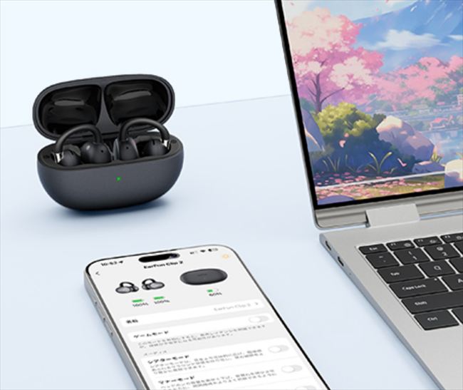 EarFun Clip2は、耳を塞がず環境音を感じながら音楽を聴く事ができるイヤーカフ型イヤホンです。