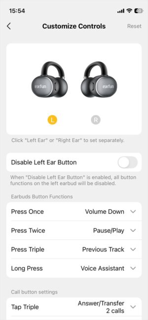 EarFunの独自アプリ「EarFun Audio」を利用する事で、イコライザー機能やファームウェアアップデート、操作の再配置などが可能となります。