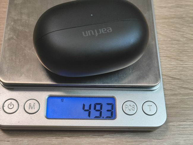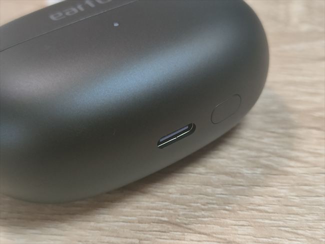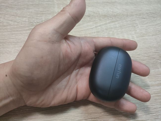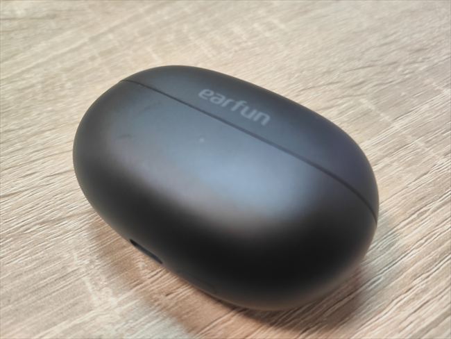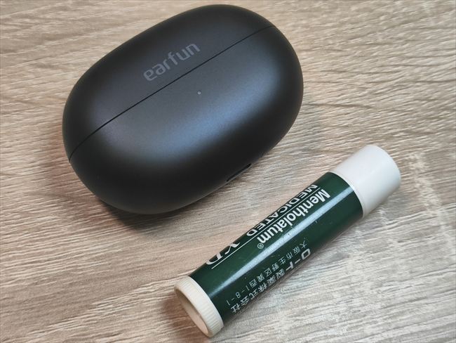 充電ケースはワイヤレスイヤホンの一般的なサイズですね。艶消しブラックです▼