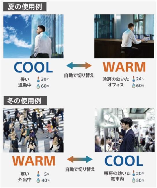 センシング技術の極致 5つのセンサーが周囲の温度、湿度、そして装着者の活動量をリアルタイムで監視します。特筆すべきは、次に起こる体温変化を予測して出力を調整するスマートサーモモードの進化です。
