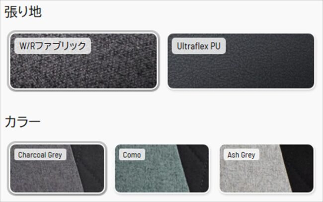 | 表面素材 | Eoulies Ultraflex PUレザー + マイクロファイバースエード Boulies W/Rファブリック + マイクロファイバースエード |