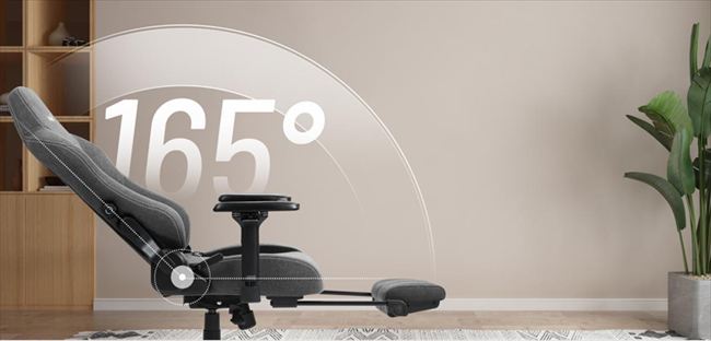 最大165度のリクライニングが可能で、仕事の合間に深い休息を取りたい時、ほぼフラットに近い状態まで倒すことができます▼