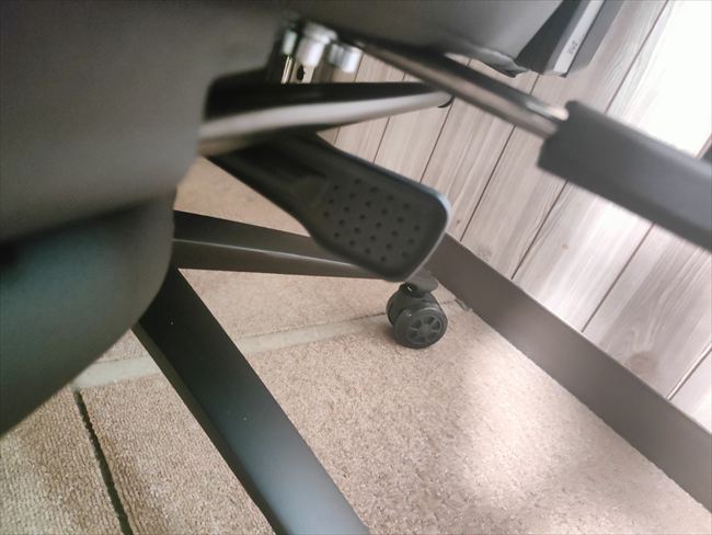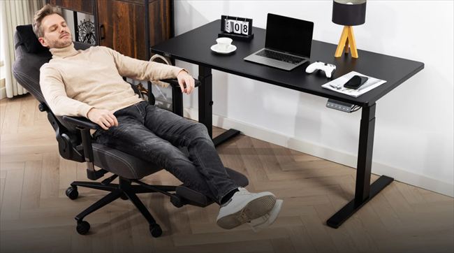 休憩したいと思ったその瞬間に、座面下からスライドさせて引き出すだけで足場が完成します。165度のリクライニングと組み合わせることで、椅子に座ったままの状態からスムーズに仮眠姿勢へと移行できるのは、内蔵型ならではの快感です。
