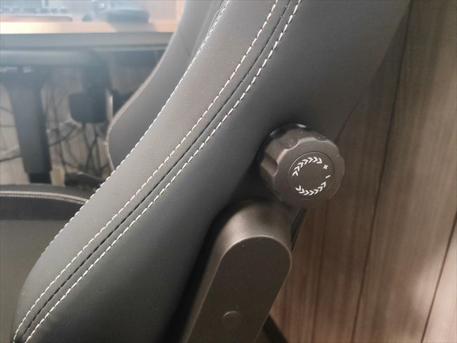 右側のダイヤルで押し出し量を調整、左側で上下の位置を調整できます。背中とのフィット感を調整できるので、背もたれ全体と背中のフィット感がさらに高まります。