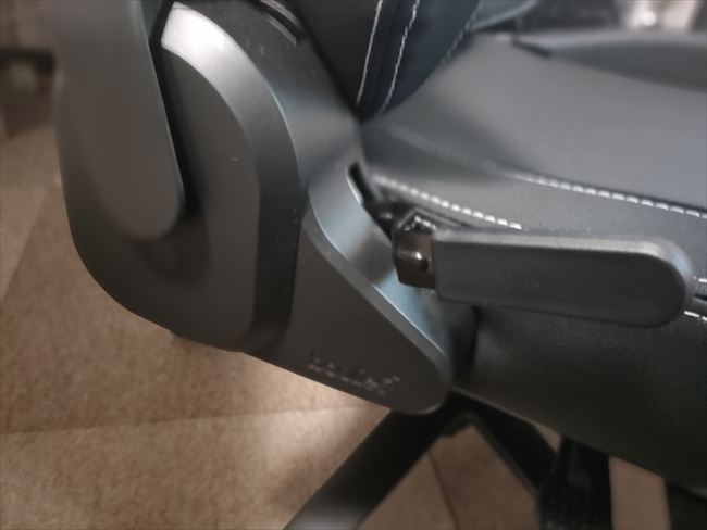 背もたれの調整レバーは右側についており、あまり力を入れる事なく調整できます。
