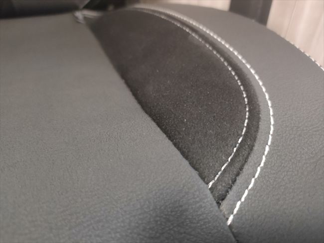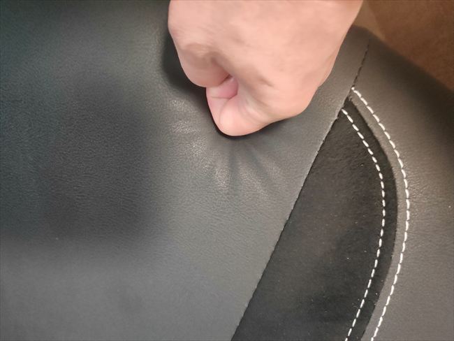 表面素材は裏側風のサラサラした手触り。ツルツルの合皮のように、汗でベトつくことはありません。