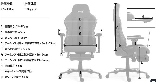 | 推奨サイズ | 身長 165cm 〜 180cm / 耐荷重 125kg |