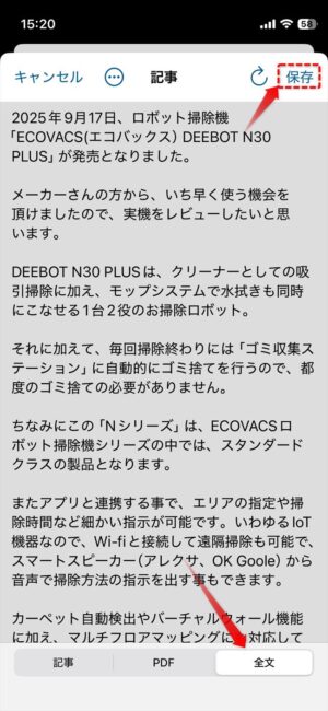 画像が不要な場合「全文」を選択すると文章だけが読み込まれます。