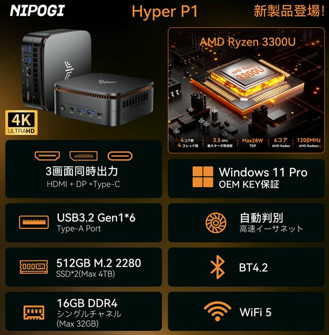 - 【セール】11月10日よりミニPC「NIPOGINiPoGi P1 3300Uモデル」が25,998円 - 2025年11月9日