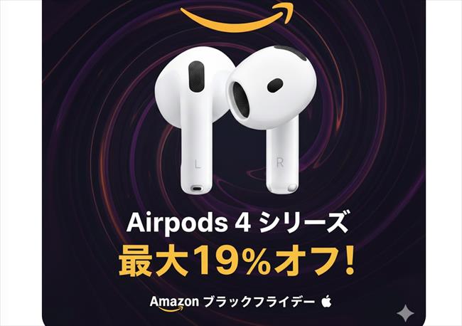 - 【Amazonブラックフライデー】AirPods4シリーズが最大19%オフ - 2025年11月28日