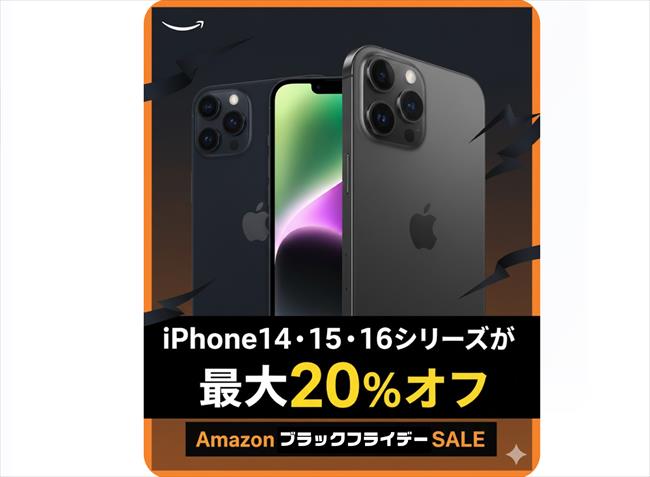 - 【Amazonブラックフライデー】「iPhone 14/15/16」が最大20%OFF〜79,800円から - 2025年11月29日