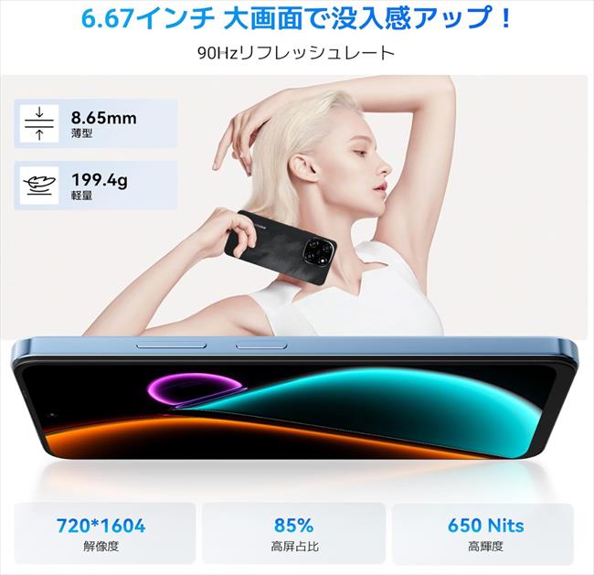 SoCにはMediatekの『 Helio G81』を搭載しており antutuベンチマークは約26~28万のエントリーモデルの端末です。ゲームをグリグリ遊ぶには物足りないですが、LINEやブラウジング、一般アプリを使う分には十分な性能です。メモリpは8GBで16GBの仮想メモリーを割り当て可能で、合計24GBとして使えます。内部ストレージ容量は256GB、2TBまでのMicroSDカードが挿せます。