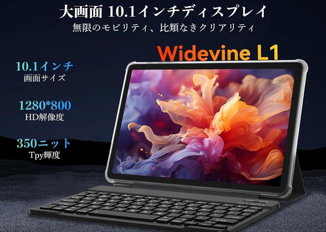 ディスプレイは10インチで1,280 × 800解像度のIPS液晶画面。WidevineL1なので動画視聴を大きな画面で視聴できます。