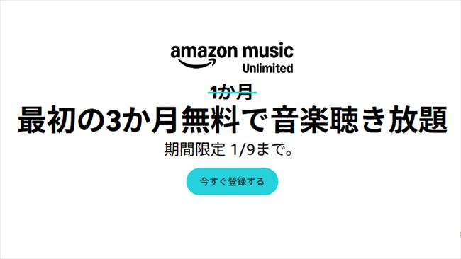 - 条件:プライム会員でAmazon Music Unlimitedに新規会員登録される方にのみに適用されるキャンペーンです。