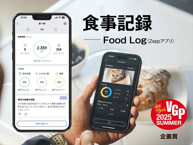 AI画像認識機能を使った栄養管理「Zepp App Food Log(食事記録機能)」では、食べ物の写真を撮るだけで自動的にカロリーや栄養素を分析します。無料で利用できるため、手軽に栄養管理が実現します。